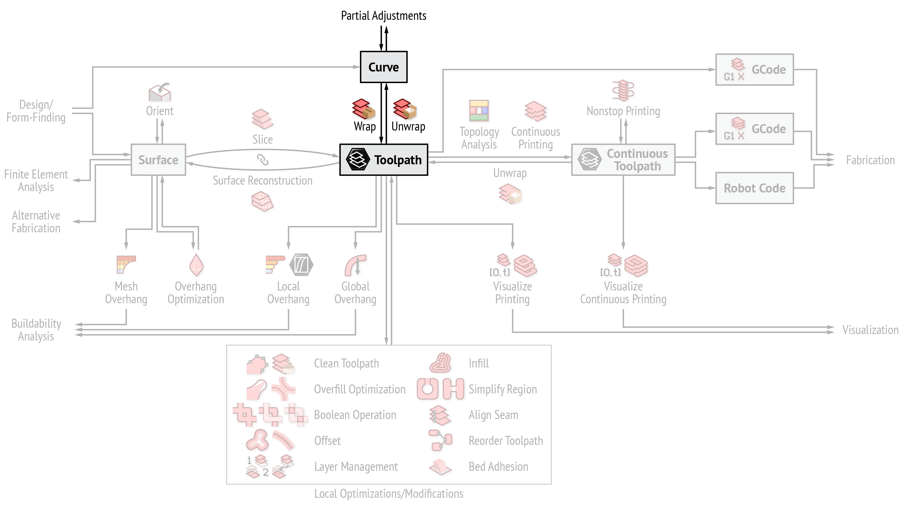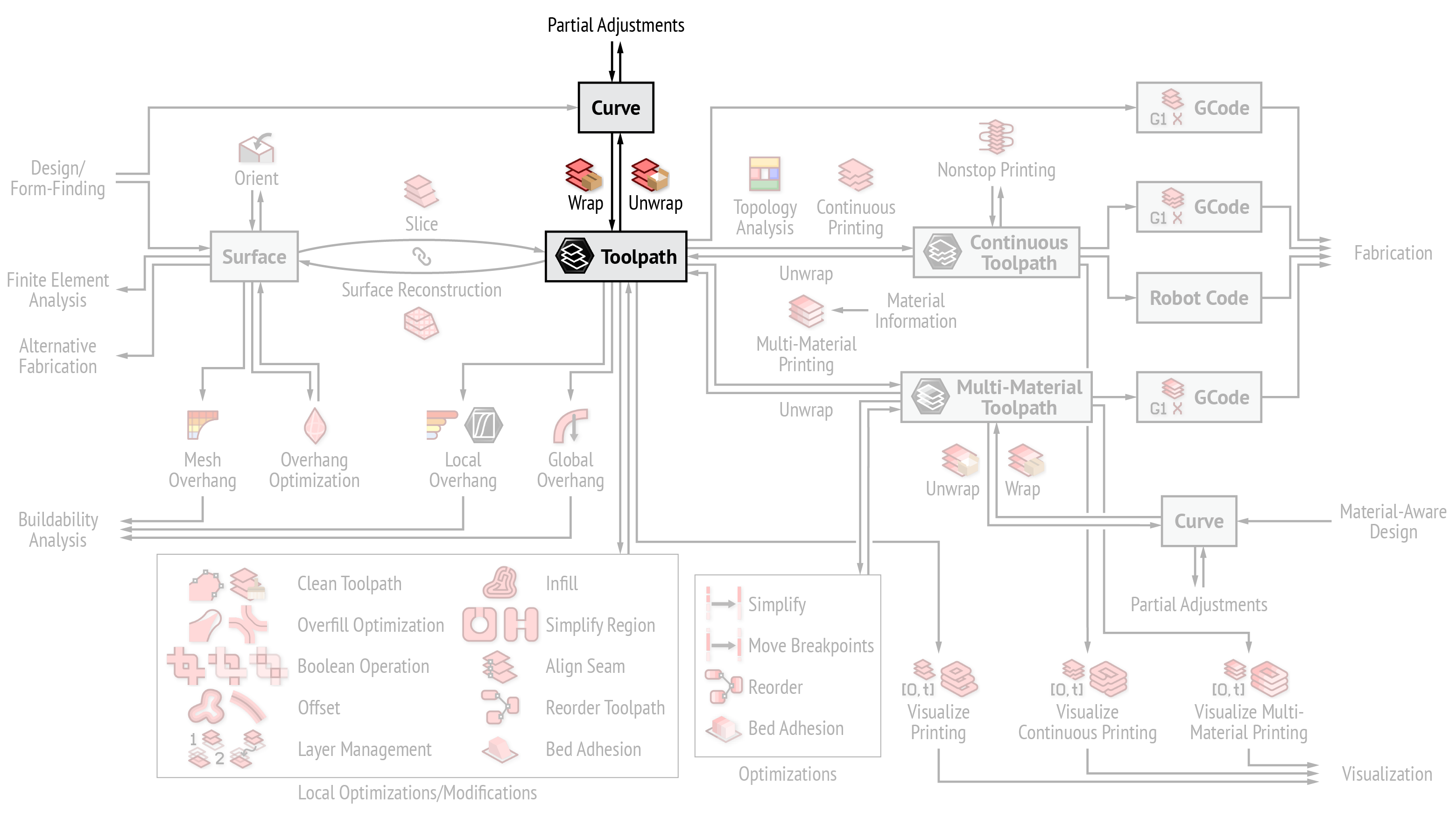 Toolpath, we benefit from the hierarchical data structure and integrated modification/optimization methods. We are also able to pipeline the geometry for analysis, visualization, and production purposes. You can internalize data as a