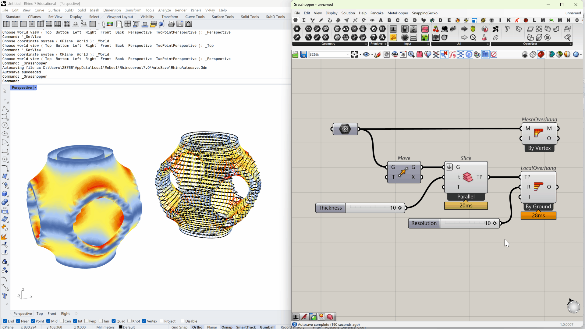 Mesh overhang and local overhang. You may adjust the resolution of the sample points in solving the local overhang