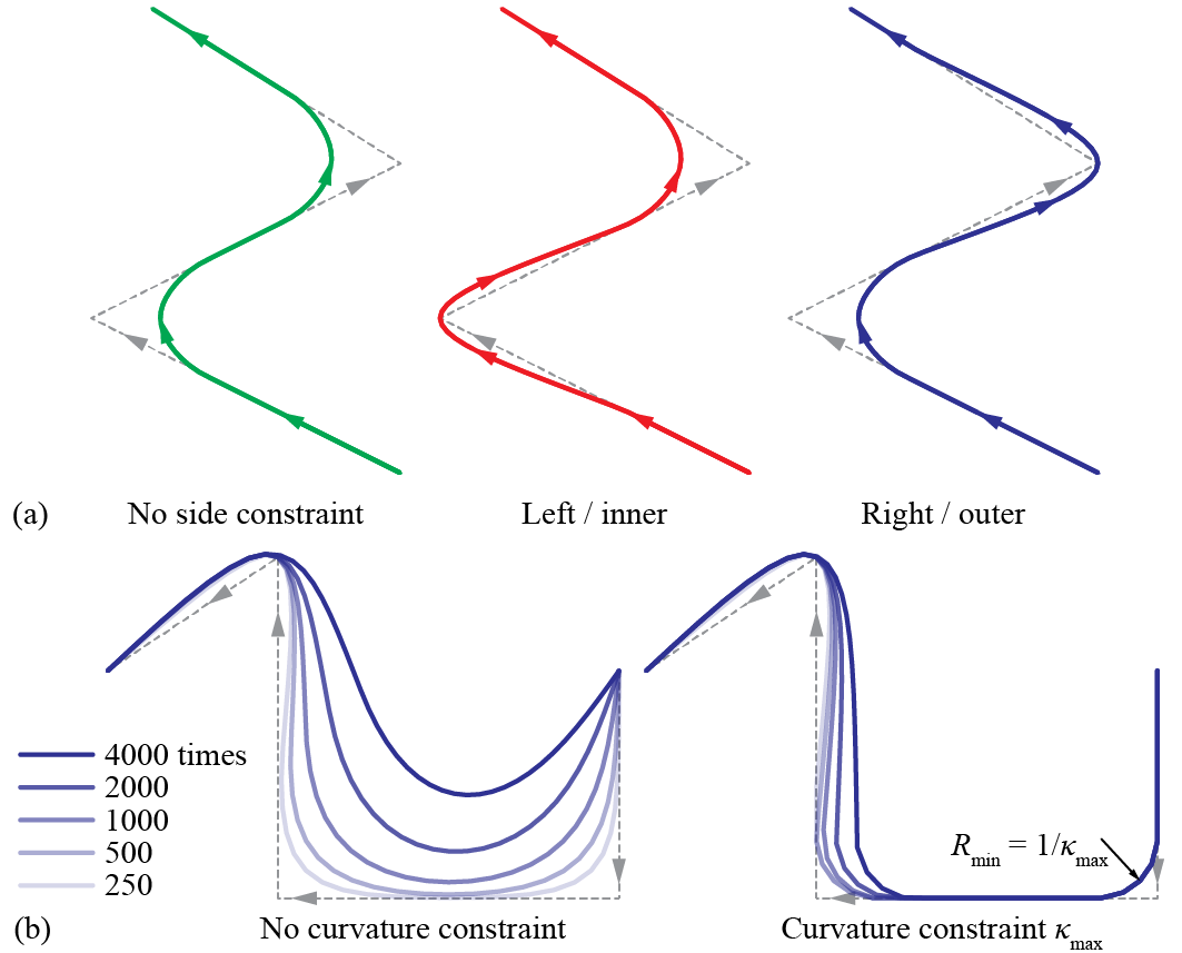 Smooth toolpath: (a) side constraints; (b) side + curvature constraints (1)