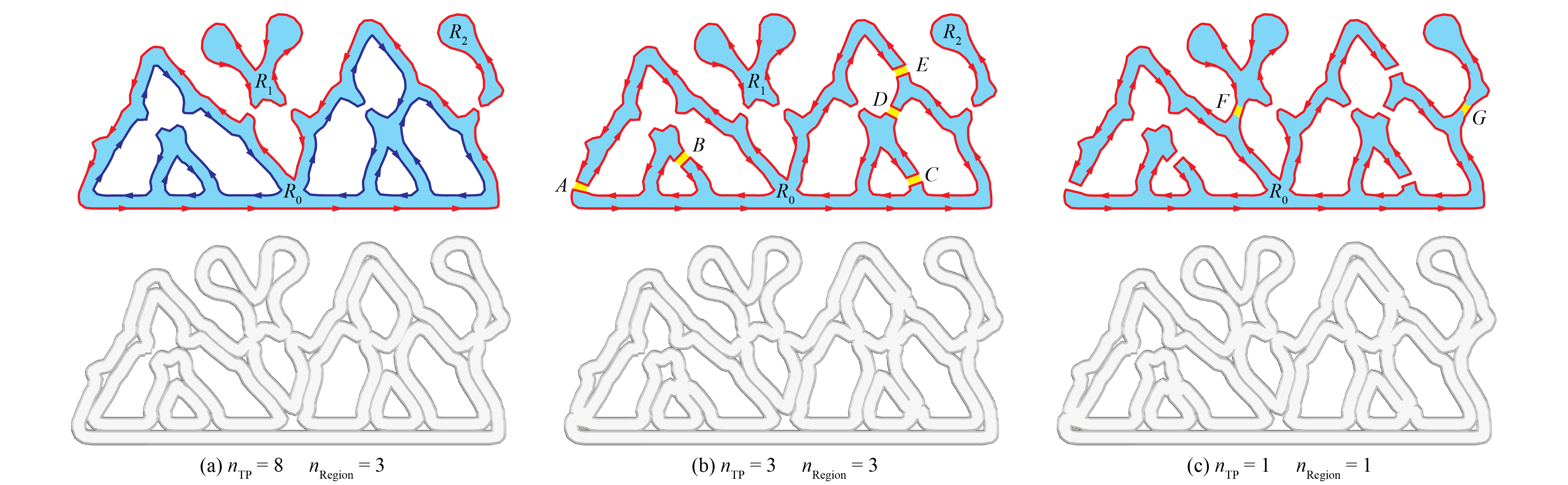 (a) A porous layer; (b) after Simplify Region; (c) then after Merge Regions (1)
